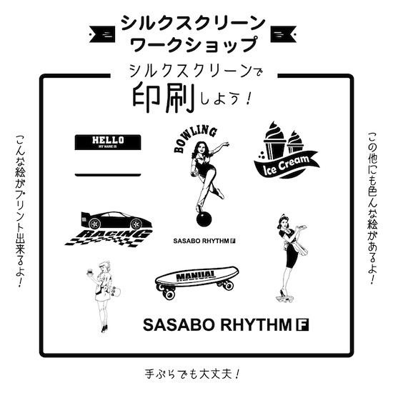 TEEシャツや、トートバックに「SASABO RHYTHM F」独自のデザイン