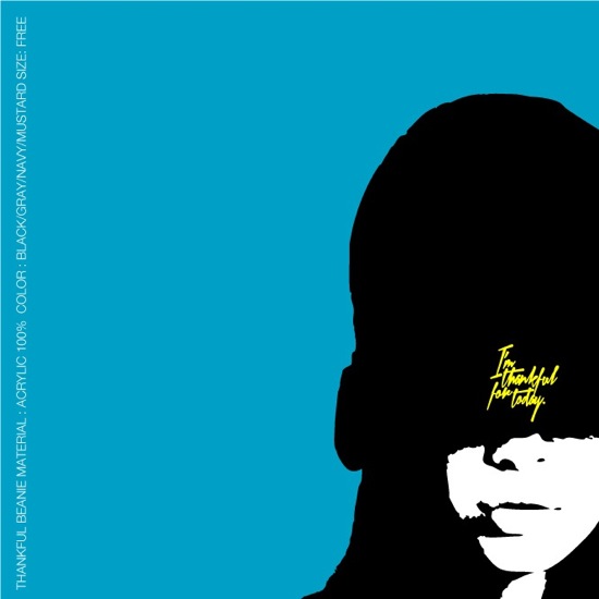 I'M THANKFUL FOR TODAYが刺繍されたシンプルなビーニー。